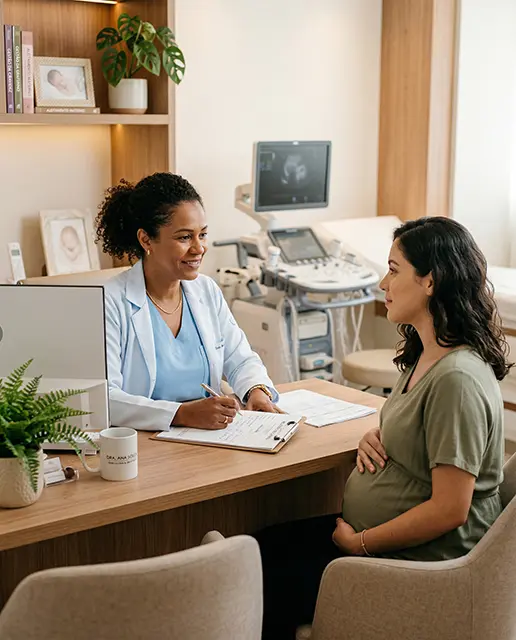 Quando o ultrassom é realizado no mesmo momento da consulta, a avaliação se torna mais integrada e o médico pode discutir os achados com a gestante de forma imediata, sem esperar por resultados de laudos externos.